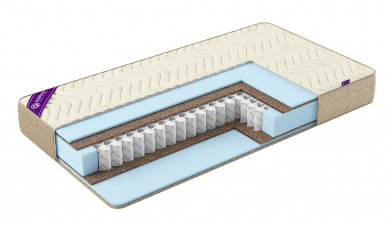 • Кокосовая койра: жесткий, прочный и гипоаллергенный материал, который не деформируется и обеспечивает хорошую вентиляцию.